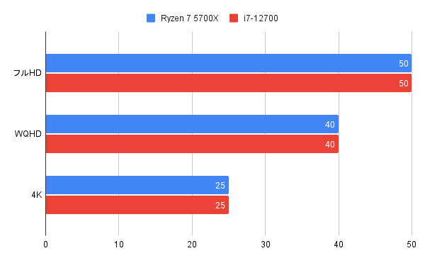 CPUのRyzen 7 5700Xについては、ほとんどCore i7-12700と同じパフォーマンスでした。